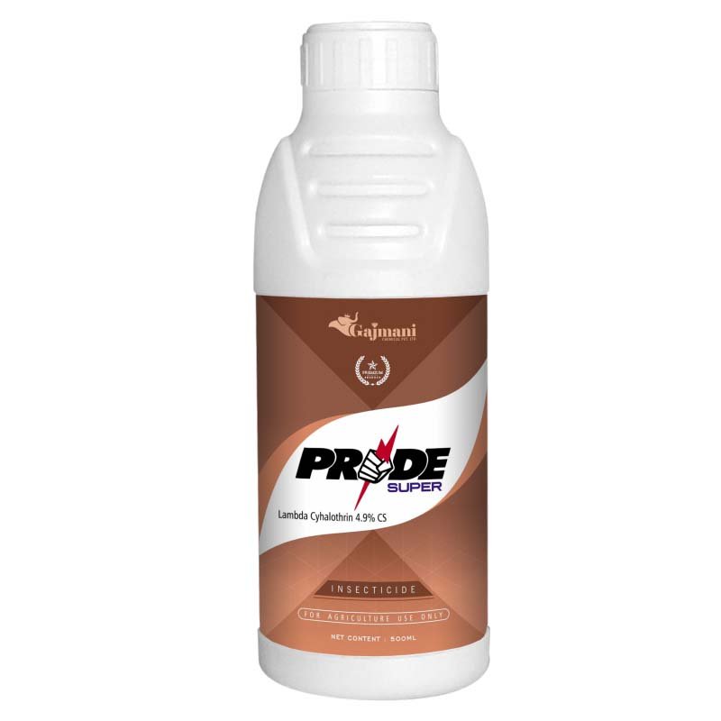 PRIDE SUPER is a combination of Lambda Cyhalothrin 4.9% CS for disease like Bollworms, Stem Borer, Leaf Folder, Shoot & Fruit Borer, Thrips & Flea Bettle, Thrips & Pod Borer.